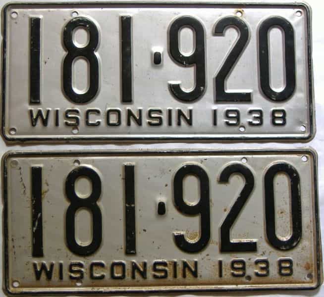 « 1938 Wisconsin (Pair) License Plate