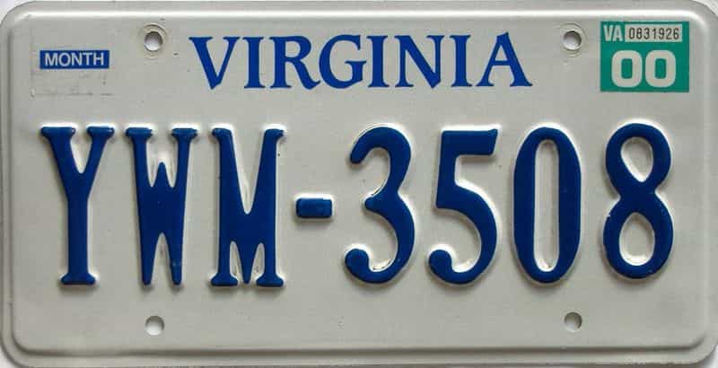 « 2000 Virginia (Single) License Plate