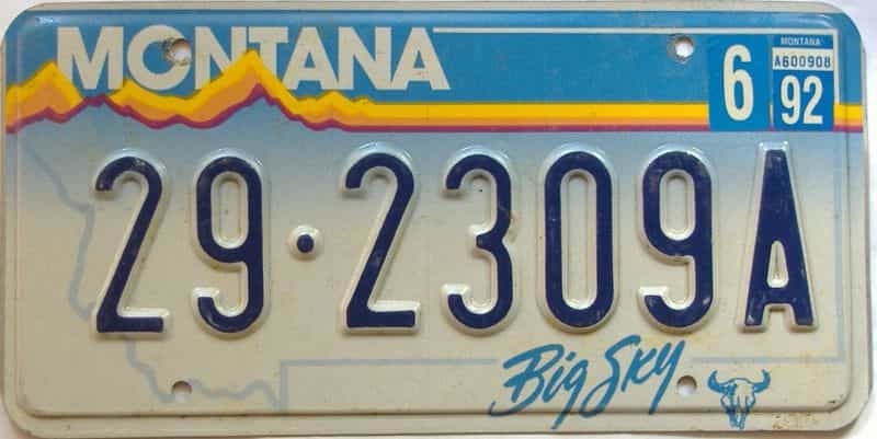 « 1992 Montana (Single) License Plate