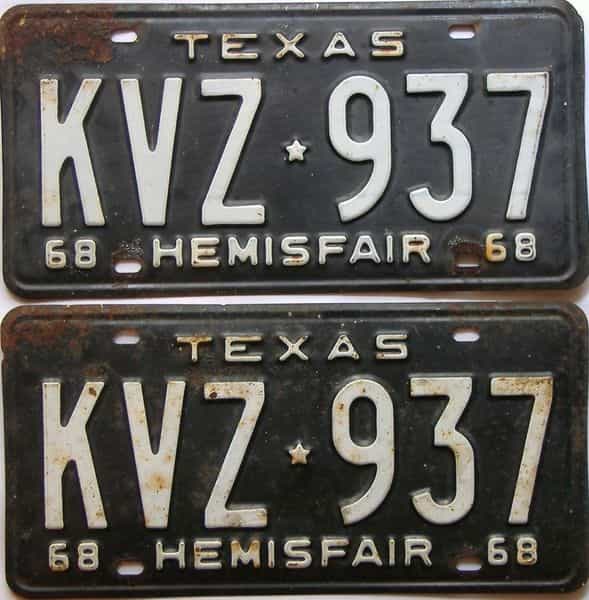 Home « Texas « 1968 Texas (Pair) License Plate