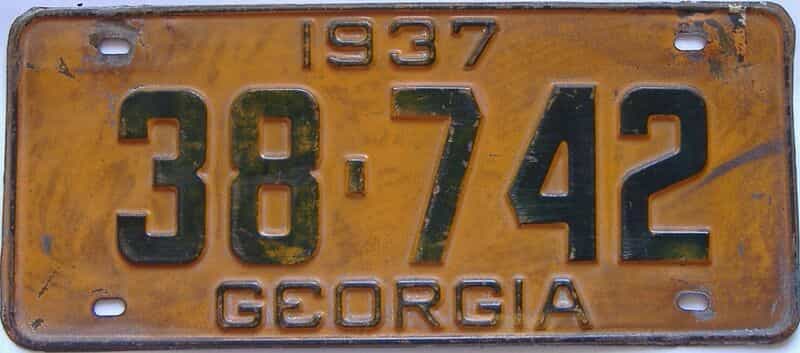 Home « Georgia « YOM 1937 Georgia (Single) License Plate