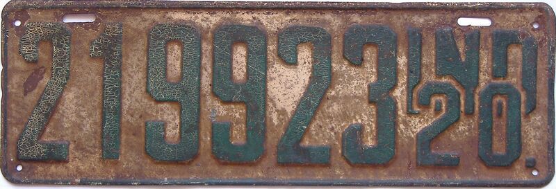Home « Indiana « 1920 Indiana (Single) License Plate