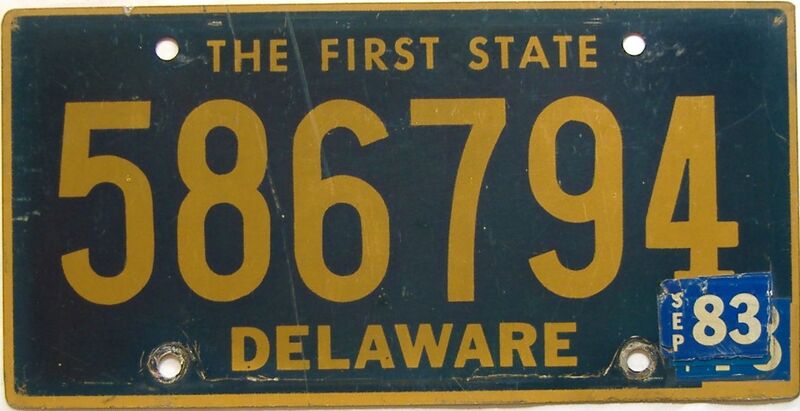 1986 Delaware License Plate