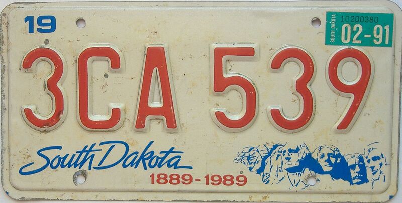 « 1991 South Dakota (Single) License Plate