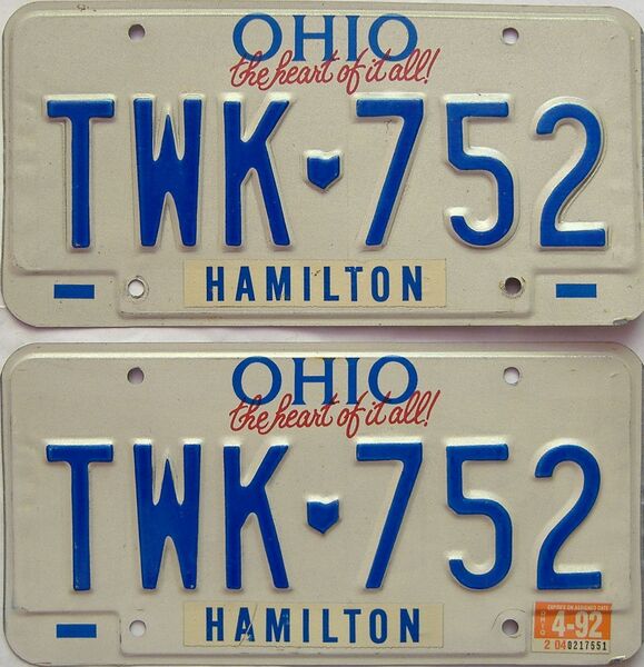 « 1992 Ohio (Pair) License Plate